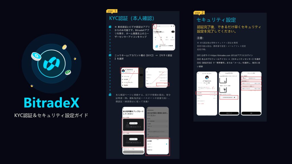 参考元資料:BitradeX KYCおよびセキュリティ認証