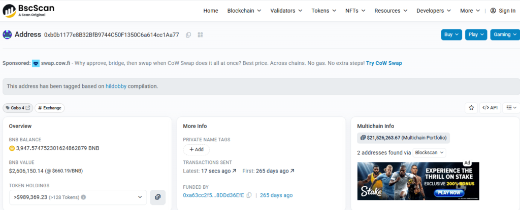 オンチェーンで資産を確認:https://bscscan.com/address/0xb0b1177e8B32BfB9744C50F1350C6a614cc1Aa77